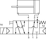 3/2-5/2-Wegeventil, NAMUR, Federrückstellung, Betriebstemp. -20 °C bis 50 °C, Arbeitsdruck 2,5 – 10 bar, Anschluss G 1/4, 24 V DC. Vorgesteuertes 3/2-5/2-Wegeschieberventil mit Gewindeanschlüssen und Lochbild nach NAMUR in federraumbelüfteter Ausführung. / Durch Hinzufügen der im Lieferumfang enthaltenen Adapterplatte wird das Ventil zu einem 3/2-Wegeventil.